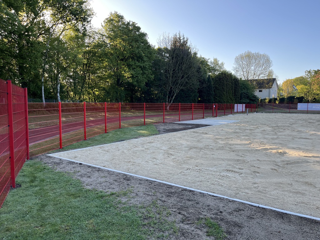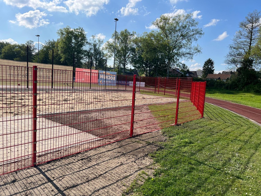 Heute (9. April) werden die Pflasterarbeiten des Fundaments für ein kleines Holzhaus durchgeführt. Die versetzte Kugelstoßanlage hat ihre neue Zuwegung schon bekommen und ist damit fertiggestellt. Offene Flächen werden mit Mutterboden aufgefüllt und mit Rasen neu eingesät. Zum Teil sind die Zaunaufstellungen mit dem vorhandenen Material erledigt; die neuen, restlichen Zaunelemente kommen in ca. zwei Wochen, dann soll auch die neue Netzanlage geliefert werden. Voraussichtlich sind Ende April alle Arbeiten abgeschlossen, sodass der Beachvolleyballbetrieb ab dem 1. Mai starten kann. Wir freuen uns drauf!