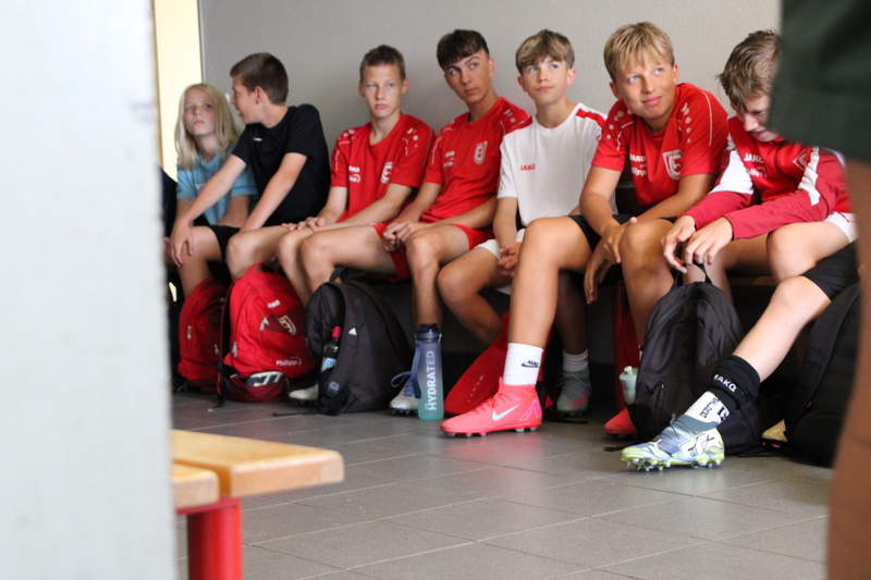Vor den ersten Meisterschaftsspielen der Jugendabteilungen ließen sich es Vertreter unserer ersten Mannschaft nicht nehmen die Jugendteams unseres Vereins zu begrüßen, sich mit ihnen auszutauschen und brennende Fragen zu beantworten. Mit dabei waren die Kapitäne Christopher Schmidt, Burak Yerli und Nikolas Wiebel sowie der Spieler Sebastian Schmerbeck und der Torwart Torben Schmidt. Stellvertretend für alle Jugendmannschaften wünschten „die Großen“ persönlich der A-, B- und C-Jugend, die an diesem Tag zugegen war, viel Erfolg und einen guten Start in die neue Saison.