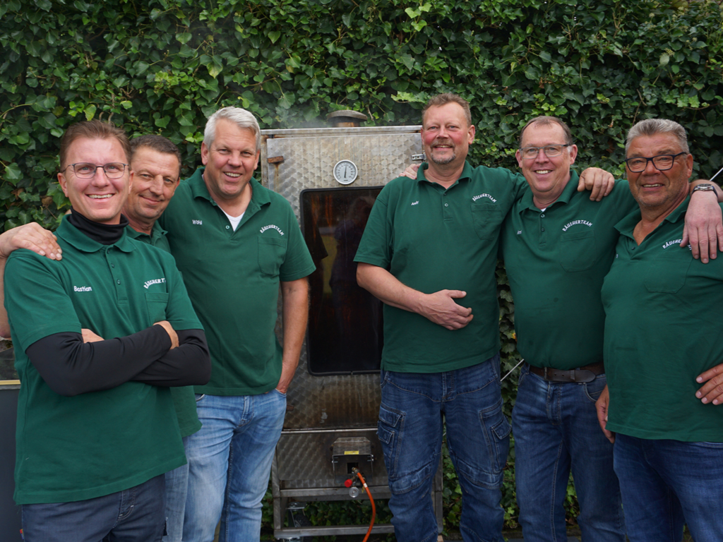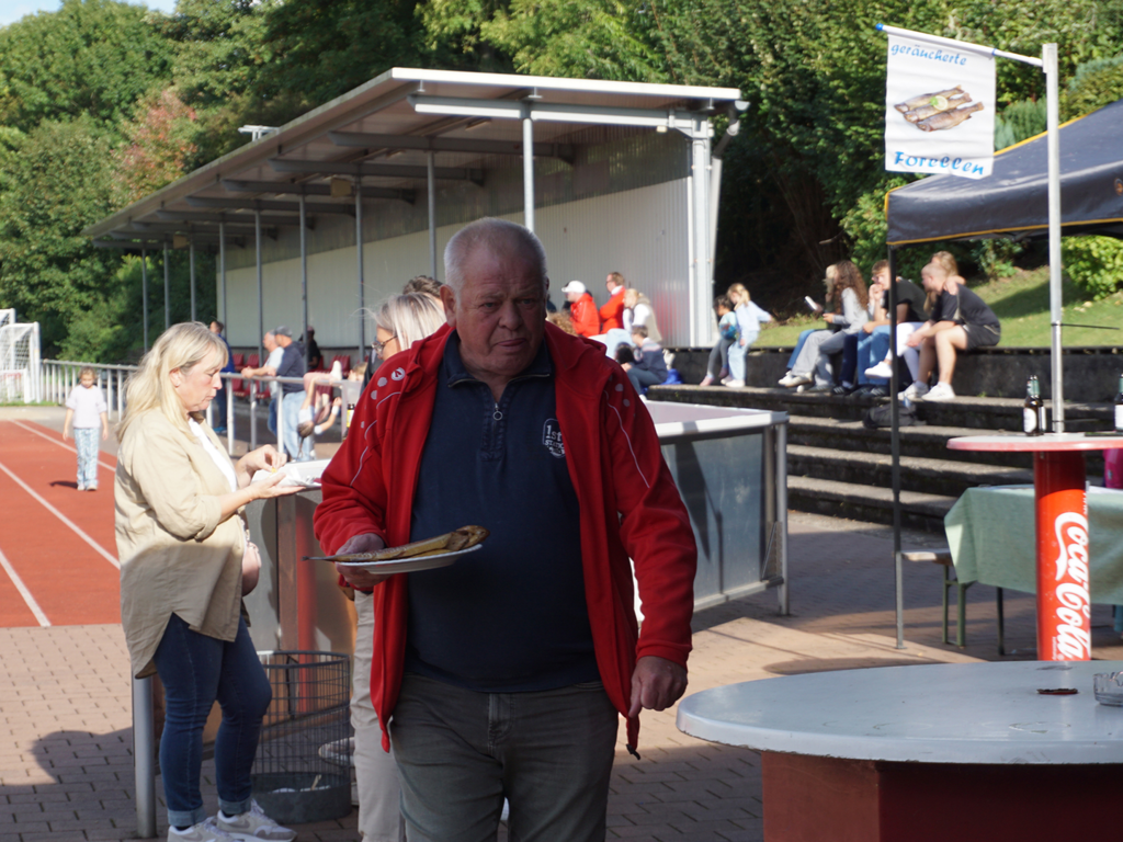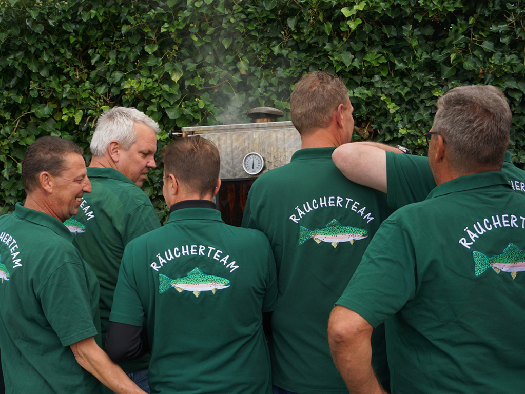 Am Samstag (13.9.) fand das erste Räucherfest auf unserer Sportplatzanlage statt. Bei gutem Wetter schob das Räucherteam rund um Manni Buhr einen Fisch nach dem anderen in den eigens dafür aufgestellten Räucherofen. Jede Menge Forellen und Lachs nebst verschiedensten Kartoffelsalat-Kreationen unserer Vereinswirtin Margret verschwanden in den Bäuchen oder wurden mit nach Hause genommen. Es schmeckte vorzüglich und das Event wurde sehr gut angenommen. Das werden wir bestimmt wiederholen – Danke liebes Räucherteam, das war spitze!