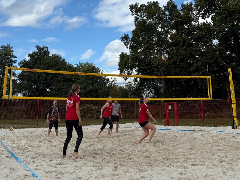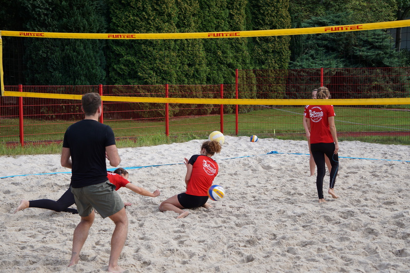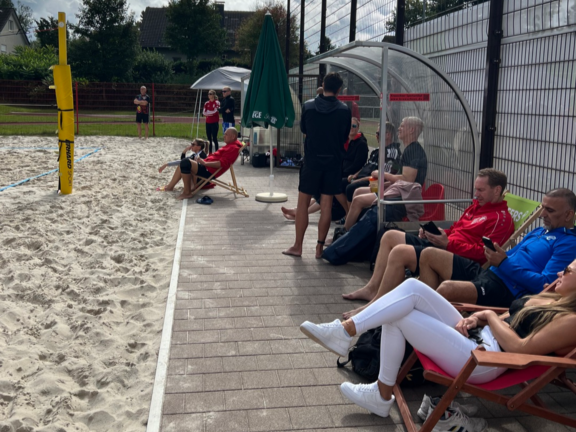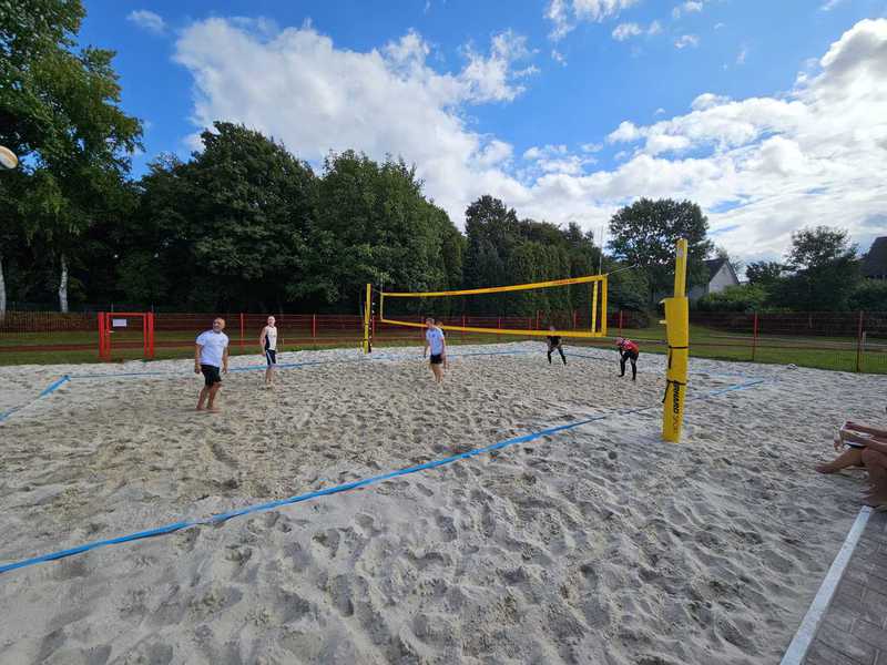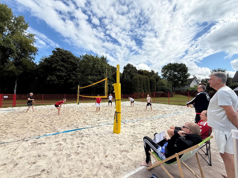 Parallel wurde Fußball gespielt und unsere Beachvolleyballer/-innen baggerten und pritschten was das Zeug hielt: Denn auch auf unserer Beachanlage war richtig was los. Schließlich galt es das Gewinnerteam des zweiten internen Beachvolleyballturniers auszuspielen.