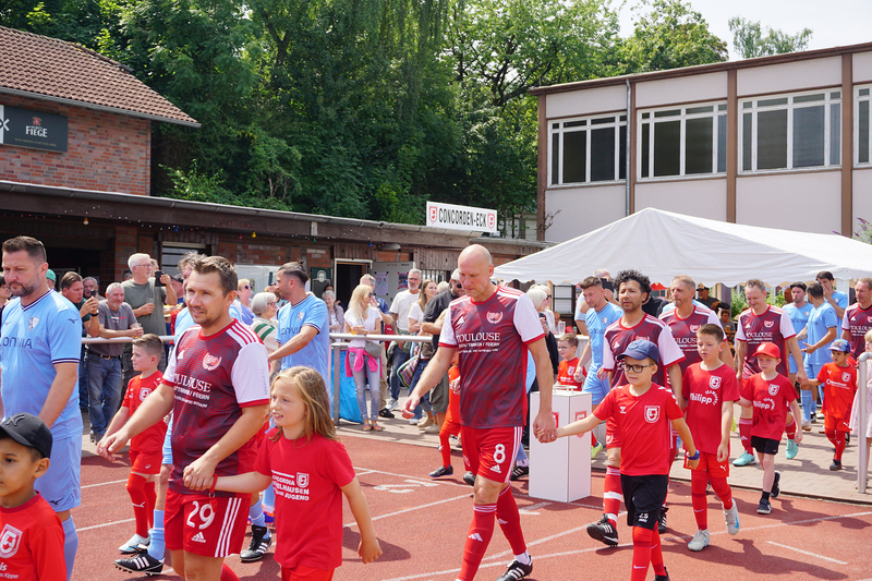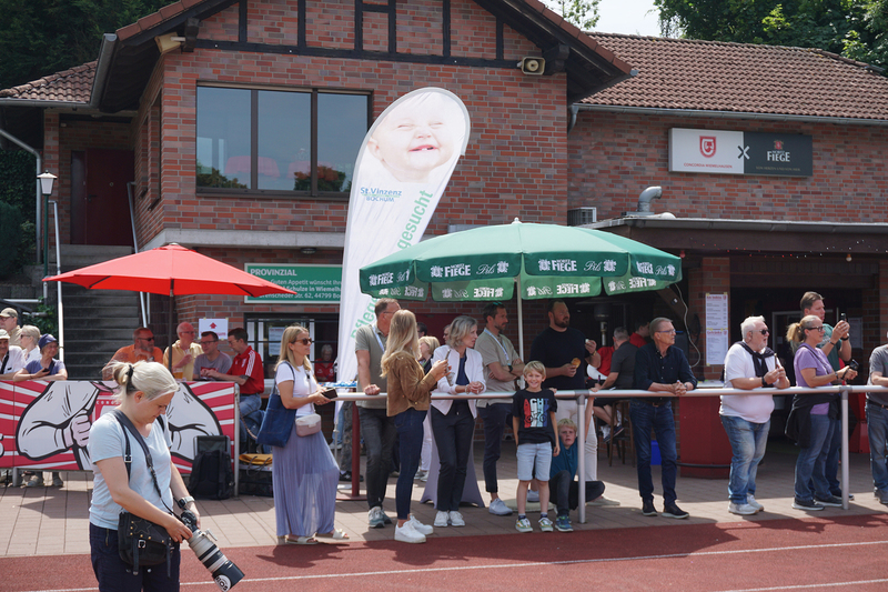 Aber das Wichtigste war an diesem Tag den St. Vinzenz Verein, der sich um notleidende Kinder und Jugendliche kümmert, durch Spenden zu unterstützen. Dies ist in sehr guter Weise gelungen: Neben den Erlösen aus dem Verkauf der Eintrittskarten und aus der Spendenbox wurde auch ein vom Traditionsteam unterschriebener Fußball versteigert. Erfreulicherweise können wir nach Aufstockung der Spendeneinnahme durch unseren Sportverein eine stolze Summe von insgesamt 3.100 Euro spenden und freuen uns darüber, dass dieser Betrag zum Kauf von Möbel und Spielzeug für sechs Kinder im Alter von vier bis sieben Jahren in der neuen Wohnanlage Laurentiusstraße verwendet wird.