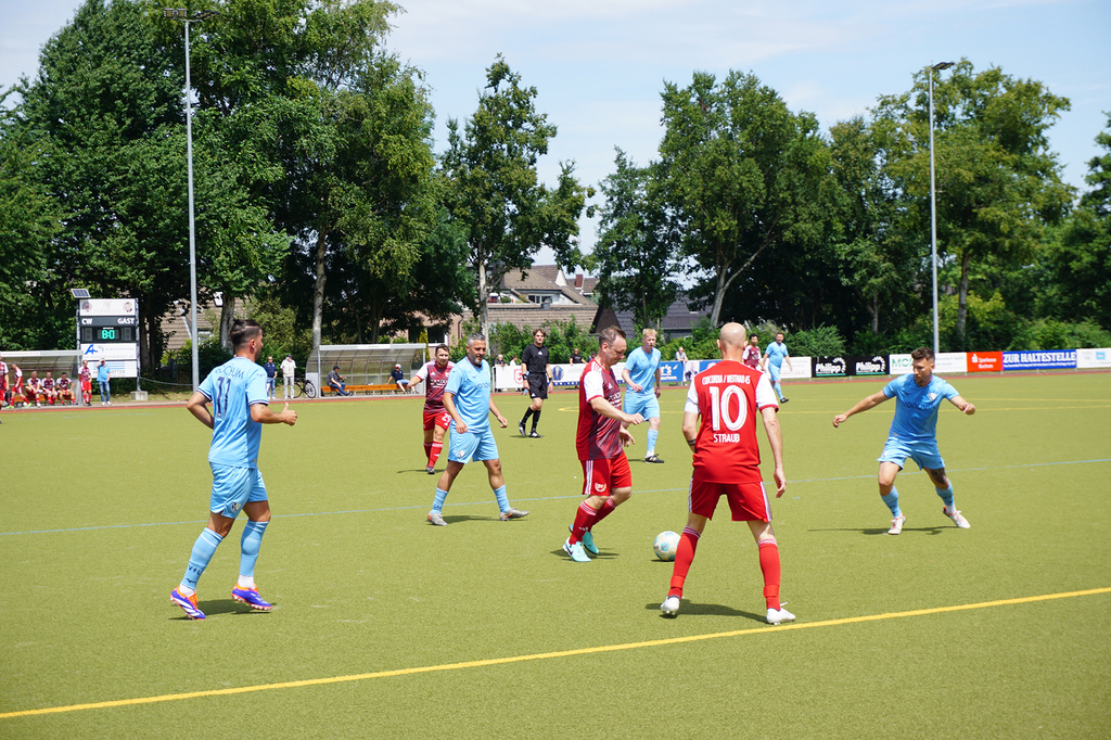 Schon die Auslosung zum Ü 40-Westfalenpokal am 28.6. deutete auf eine schwere Gruppe hin. So ging es im ersten Spiel direkt gegen den späteren Gewinner, die SpVg Hagen. Trotz guter Chancen ging das Spiel unglücklich mit 0:2 verloren.