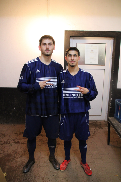 Wiemelhausen, 12.10.25: Dennis Gumpert und Patrick Sacher, die beiden Torschützen hatten allen Grund zu jubeln, denn es blieb bei der verdienten 2:1-Führung, auch wenn Torwart Torben Schmidt es am Ende nochmal spannend gemacht hat. Den Elfer, der auf seine Kappe ging, hielt er dann bravorös. Glückwunsch Jungs – weiter so!