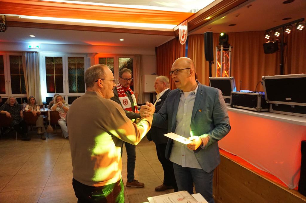 Unser Vereinsmitglied Björn Schneider (vorne rechts) wurde am letzten Samstag (15.11.25) vom FLVW Kreis Bochum für sein langjähriges ehrenamtliches Engagement in unserem Verein ausgezeichnet. Björn ist bereits seit 45 Jahren Vereinsmitglied, seit fast 30 Jahren Vorstandsmitglied und derzeit als Hauptkassierer im geschäftsführenden Vorstand tätig. Er kümmert sich weiterhin um die Mitgliederdatenbanken aller Abteilungen, betreut alle weiteren EDV-technischen Angelegenheiten mit und reicht auch bei vielen anstehenden Events und zu klärenden Themen helfend „Hand und Verstand“.